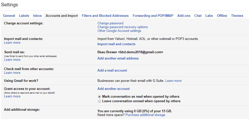 In the settings section, choose, Accounts and Import. Then select, Send mail as: